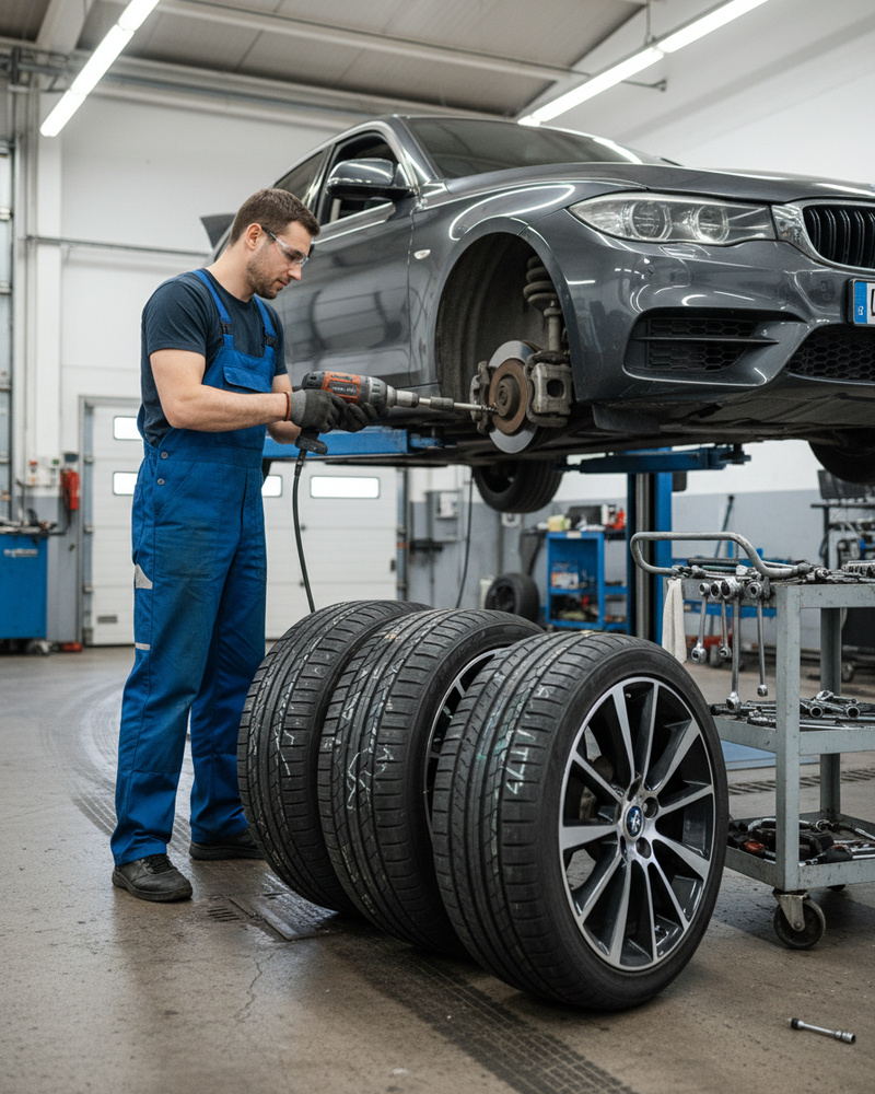 Servicio de rotación de llantas para desgaste uniforme junto con revisión completa del sistema de frenos y ajuste si es necesario.